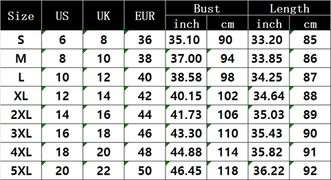 S, M, L, XL, 2XL, 3XL, 4XL, 5XL