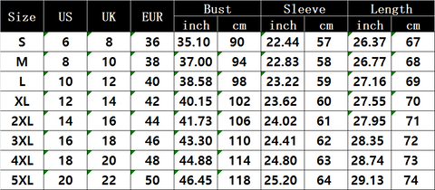 S, M, L, XL, 2XL, 3XL, 4XL, 5XL |