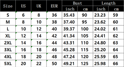 S, M, L, XL, 2XL, 3XL, 4XL, 5XL |
