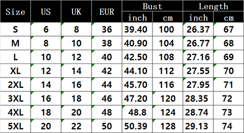 S, M, L, XL, 2XL, 3XL, 4XL, 5XL |
