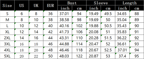 S, M, L, XL, 2XL, 3XL, 4XL, 5XL |