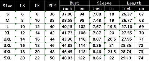 S, M, L, XL, 2XL, 3XL, 4XL, 5XL |