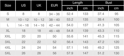 S, M, L, XL, 2XL, 3XL, 4XL, 5XL |