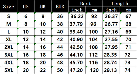 S, M, L, XL, 2XL, 3XL, 4XL, 5XL |