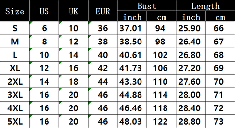 S, M, L, XL, 2XL, 3XL, 4XL, 5XL |