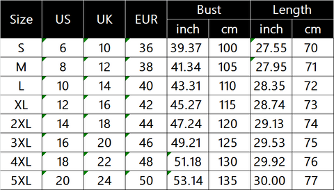 S, M, L, XL, 2XL, 3XL, 4XL, 5XL |