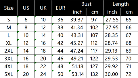 S, M, L, XL, 2XL, 3XL, 4XL, 5XL |