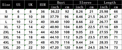 S, M, L, XL, 2XL, 3XL, 4XL, 5XL |