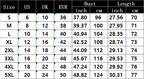 S, M, L, XL, 2XL, 3XL, 4XL, 5XL |